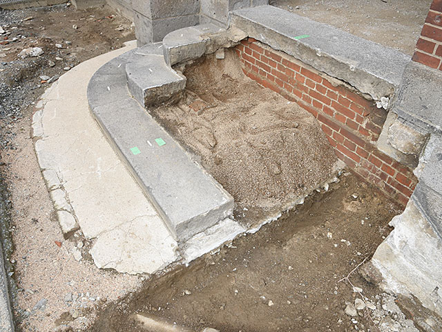 階段石の取り外し状況。
