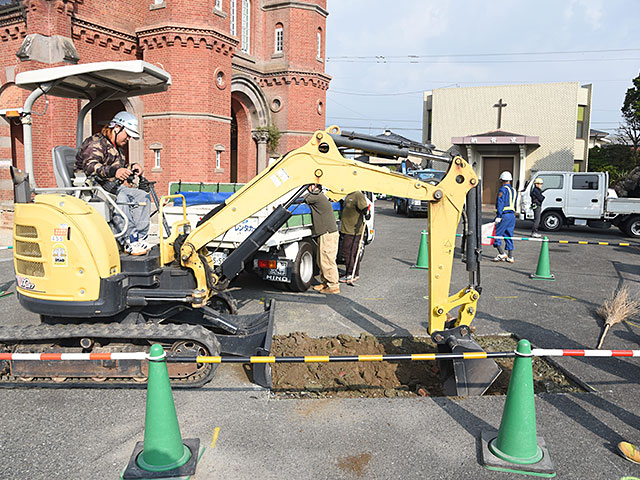 参道南側の煉瓦塀の大ばらしを行った。