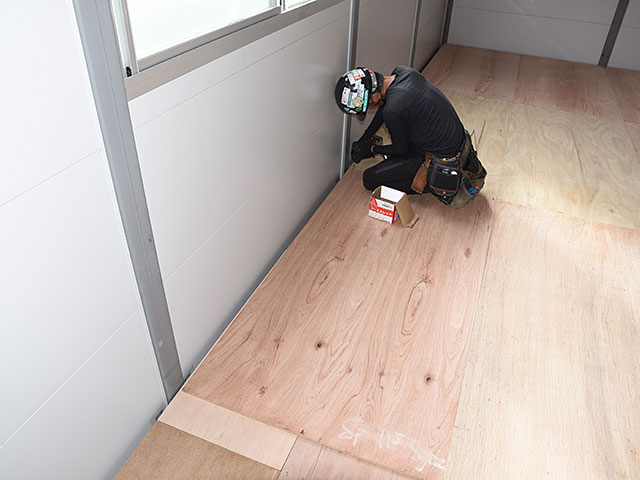 内部床板張りを行った。